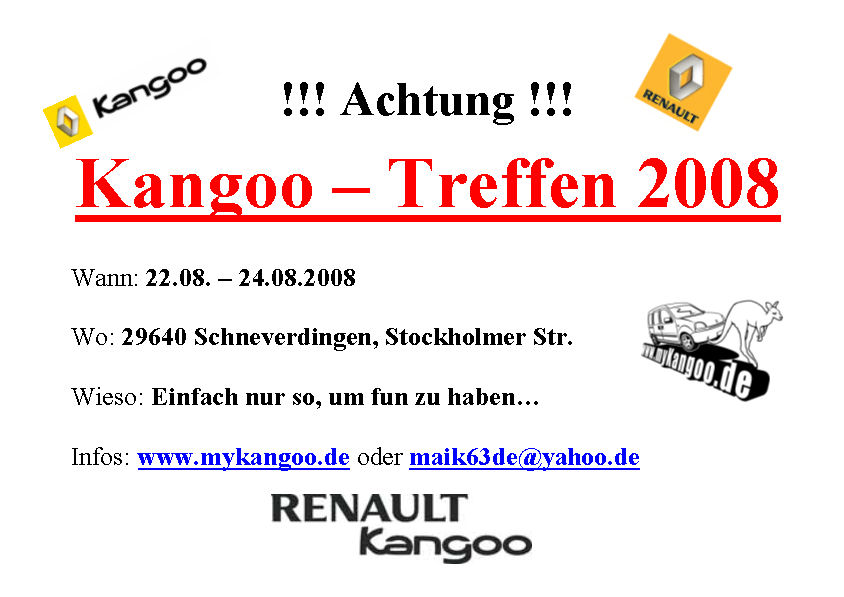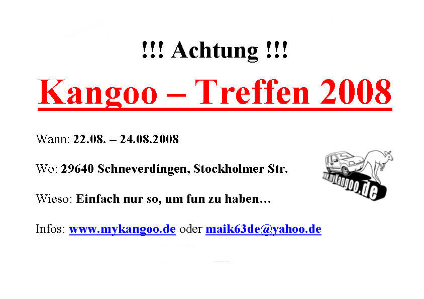 | 14:03, 26. Jan. 2008 | 844 × 597 (85 KB) | Maik63 (Diskussion | Beiträge) | Werbeplakat fürs Kangoo-Treffen 2008 1. Entwurf: Maik Neumann |